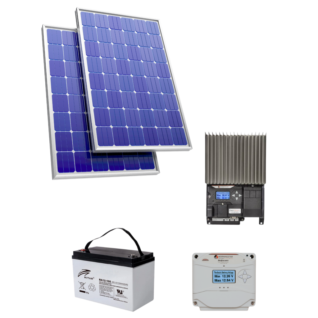 Solar-based power solutions with batteries, charge controllers, and power-management units for continuous remote-station operation.